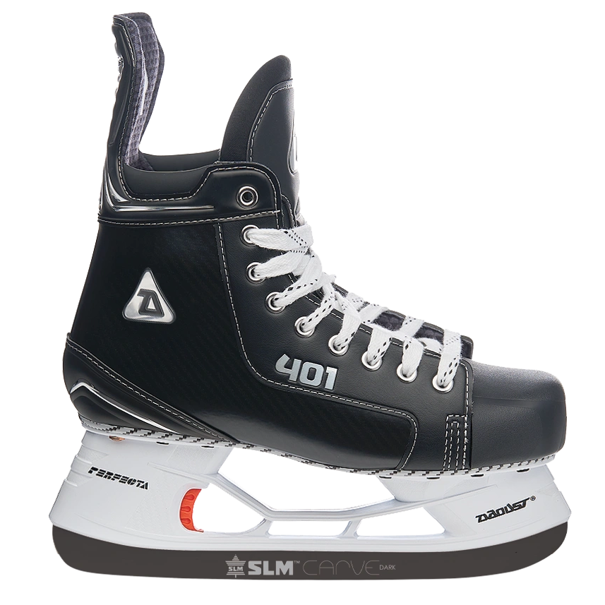 The 401 is a price point option with a distinct retro flair. While the 401 offers a uniquely vintage feel, the design is unmistakably modern, and comes in satin black with silver stictching. Featuring a high-performance boot, and the Perfecta Kwik-1 Rapid Release Holder, the 401 is designed as the ultimate skate for intermediate players.